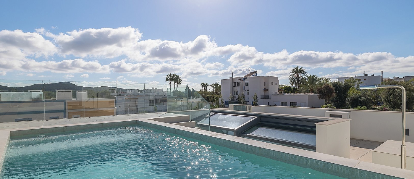 A defining highlight is the spectacular rooftop terrace, transformed into a private sanctuary with a swimming pool and open village views—an elevated setting perfect for entertaining, relaxing, or embracing Ibiza’s unique lifestyle.